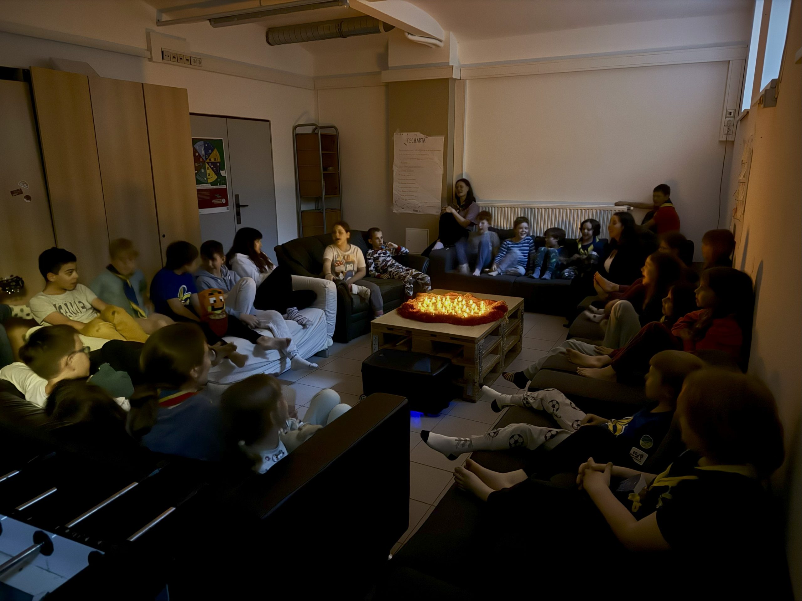 Danach hatten die WiWö noch einiges zu bereden, das geht natürlich am besten bei einem leckeren Abendessen😉. Zum Abschluss machten wir noch ein kleines Indoor-Lagerfeuer und sangen einige Lieder.