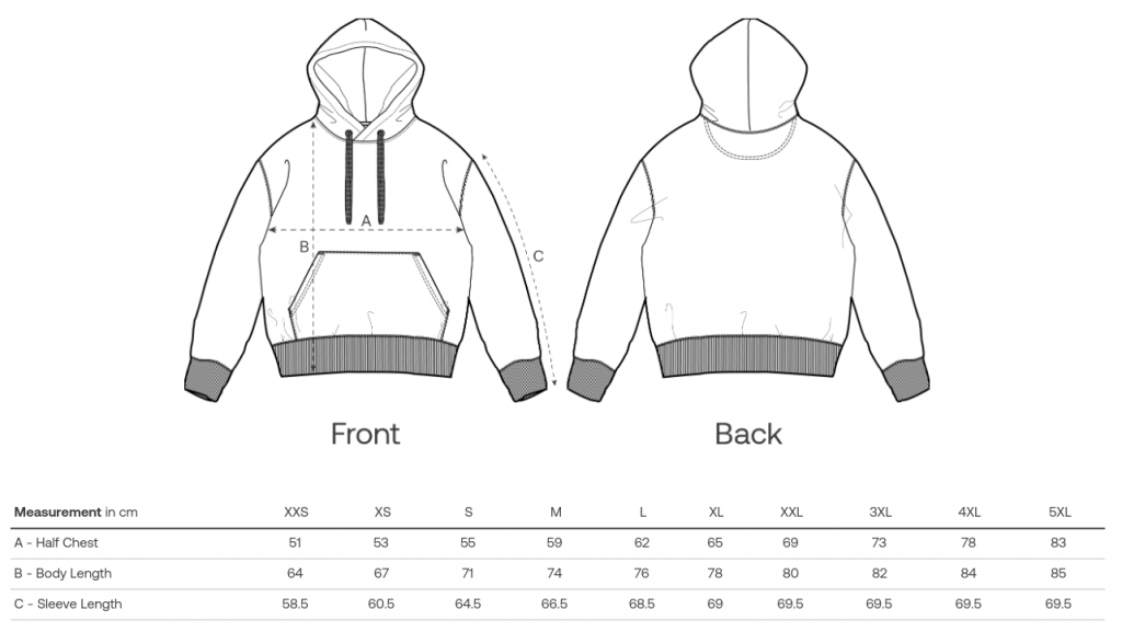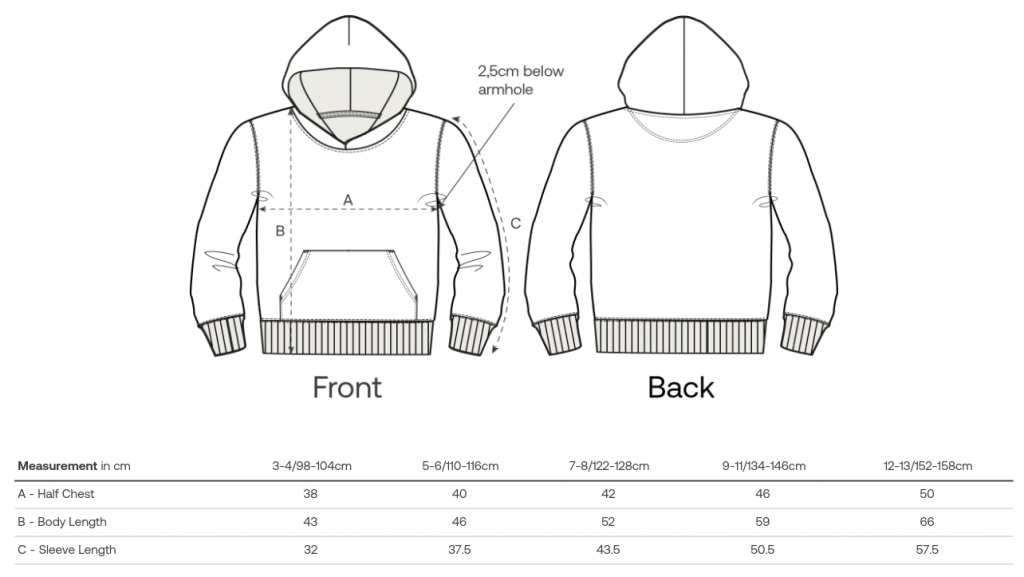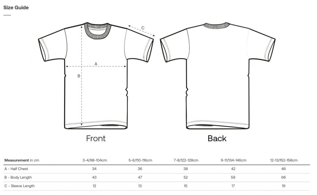 Zur besseren Übersicht sind hier nochmals die Bilder der Größentabellen der Herstellerfirma der Bekleidung abgebildet, um sie in ganzer Größe anzusehen.